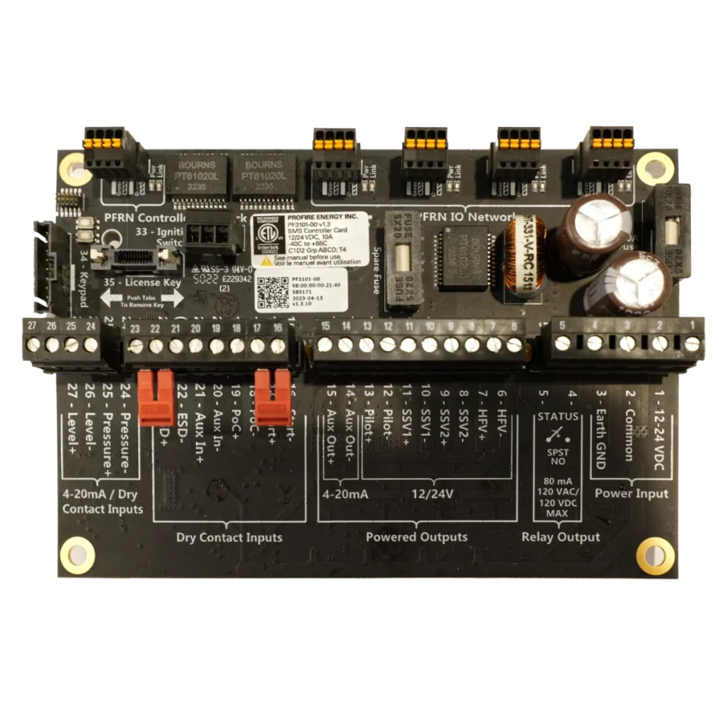The PF3101-00 BMS Control Card acts as a hub for all associated I/O cards and instrumentation for a designated burner. Providing accurate, real-time readings for all input/output system behaviors and state transitions based on your specific selections, our control card ensures your system continues to operate efficiently and safely with real-time status updates.
