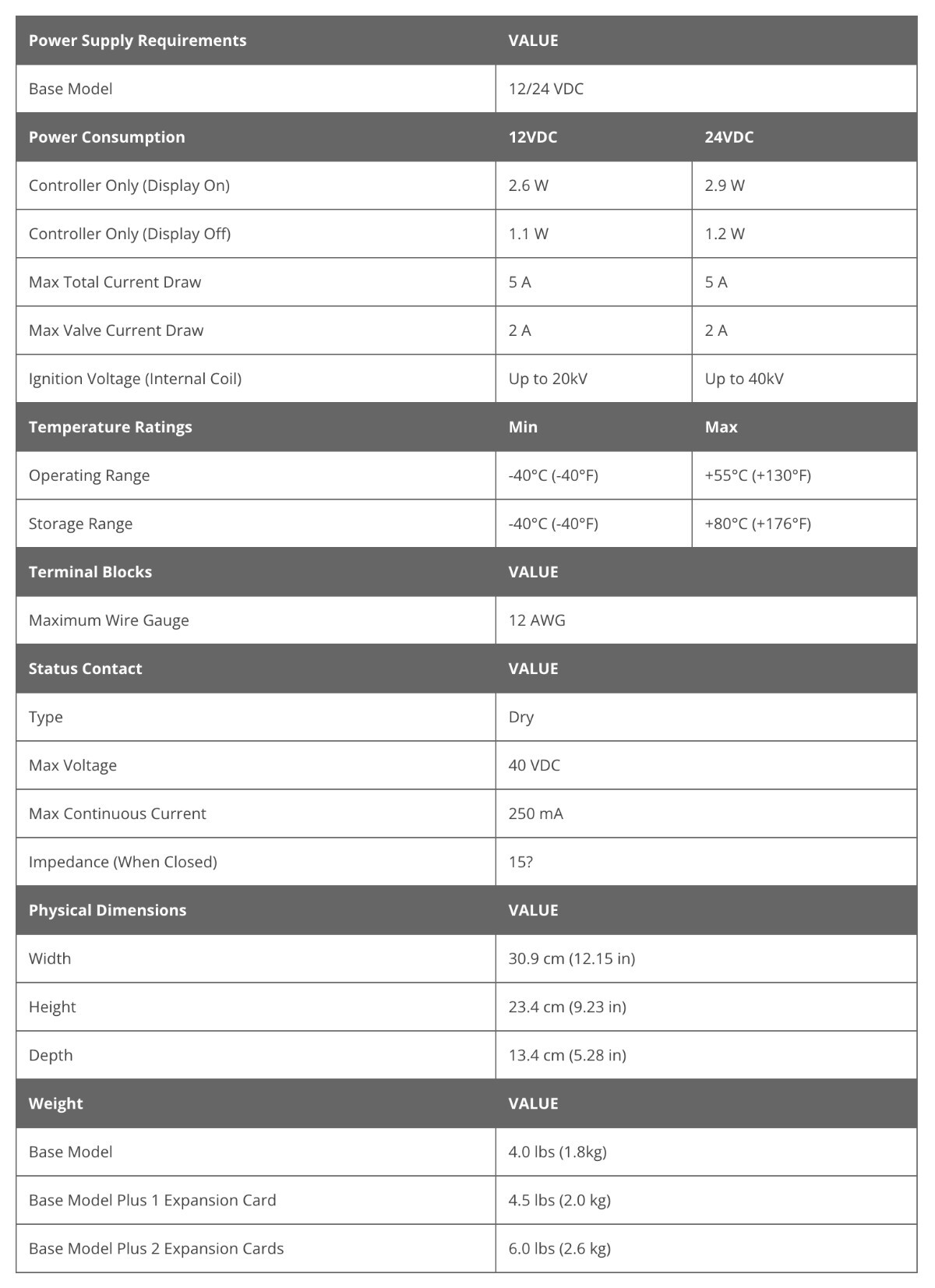 - Programmable setpoints for ignition and shut off